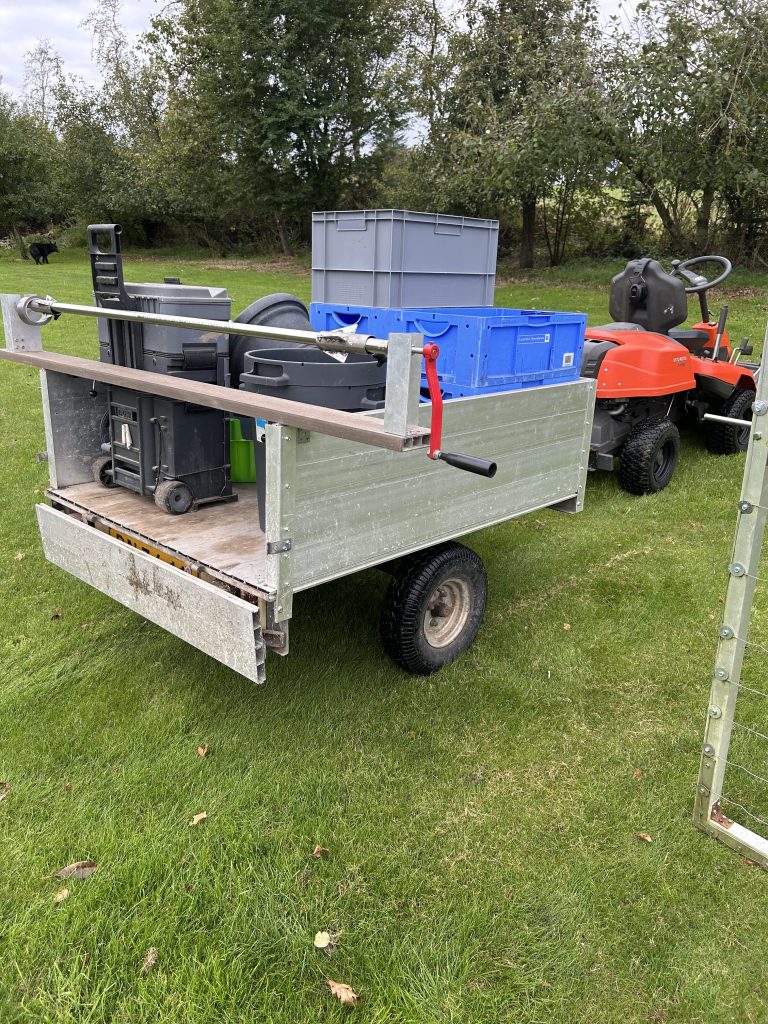 En æble rasper blev motoriseret  og vi satte net på rækkerne for at fuglene ikke skulle spise alle druerne.